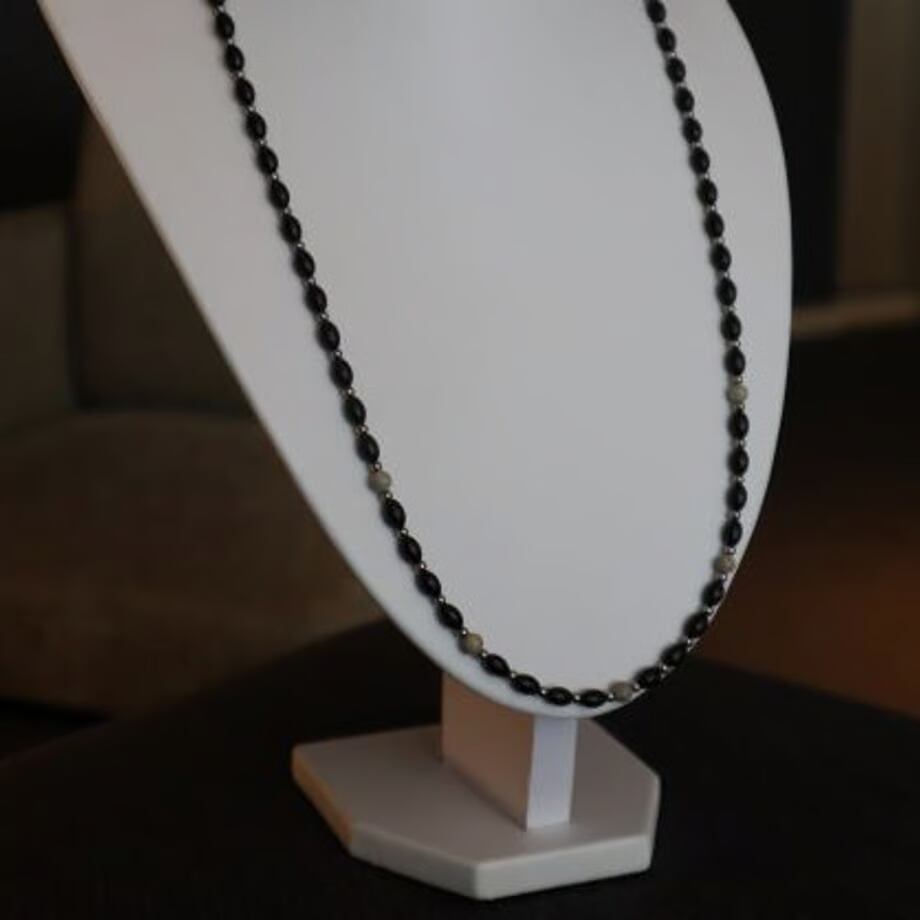 ネックレスに天香石パウダーをコーティングした機能性アクセサリーです。