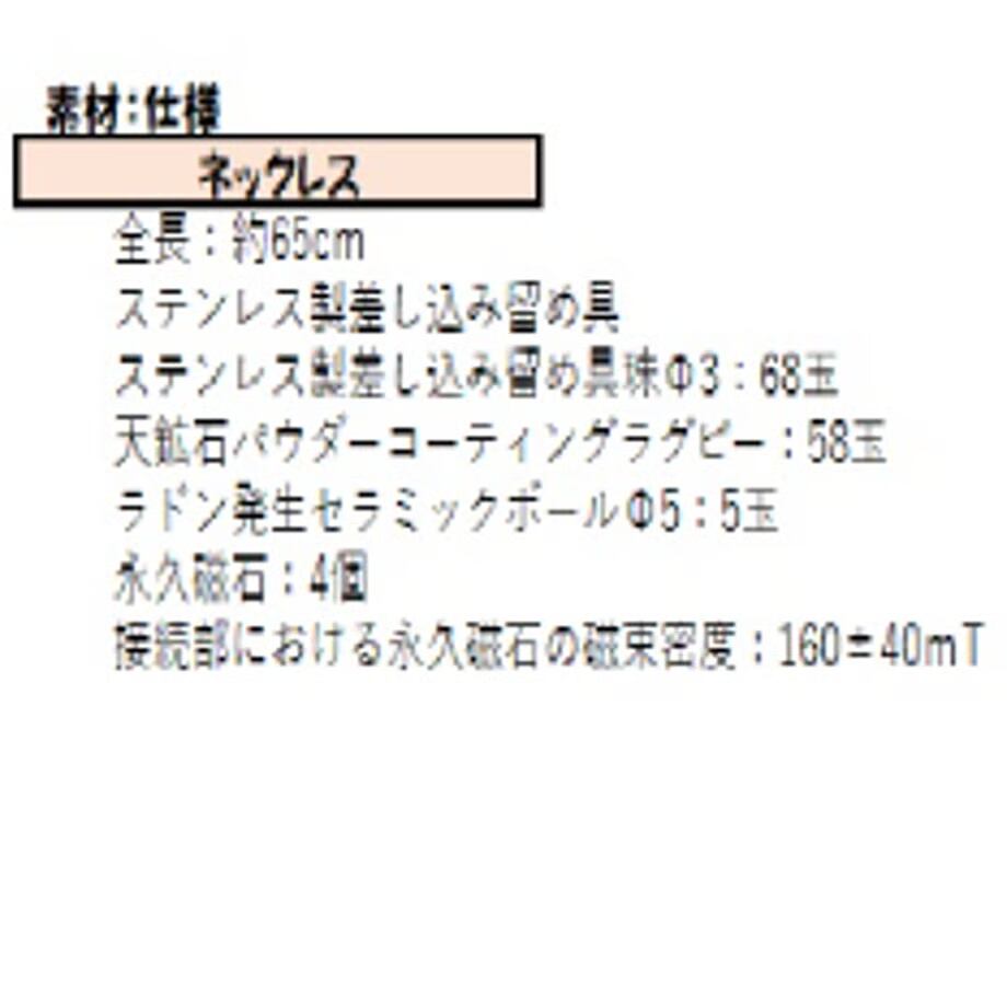 天然鉱石を組み合わせた健康ネックレスです。160mTの強力な永久磁石を、コリの激しい首後ろのつけ根付近に配置しました。また、温泉成分として知られるラドンを発生する希少な天然鉱石を使用したセラミックスボールを使用し、血行促進、首・肩のコリの改善に役立ちます。