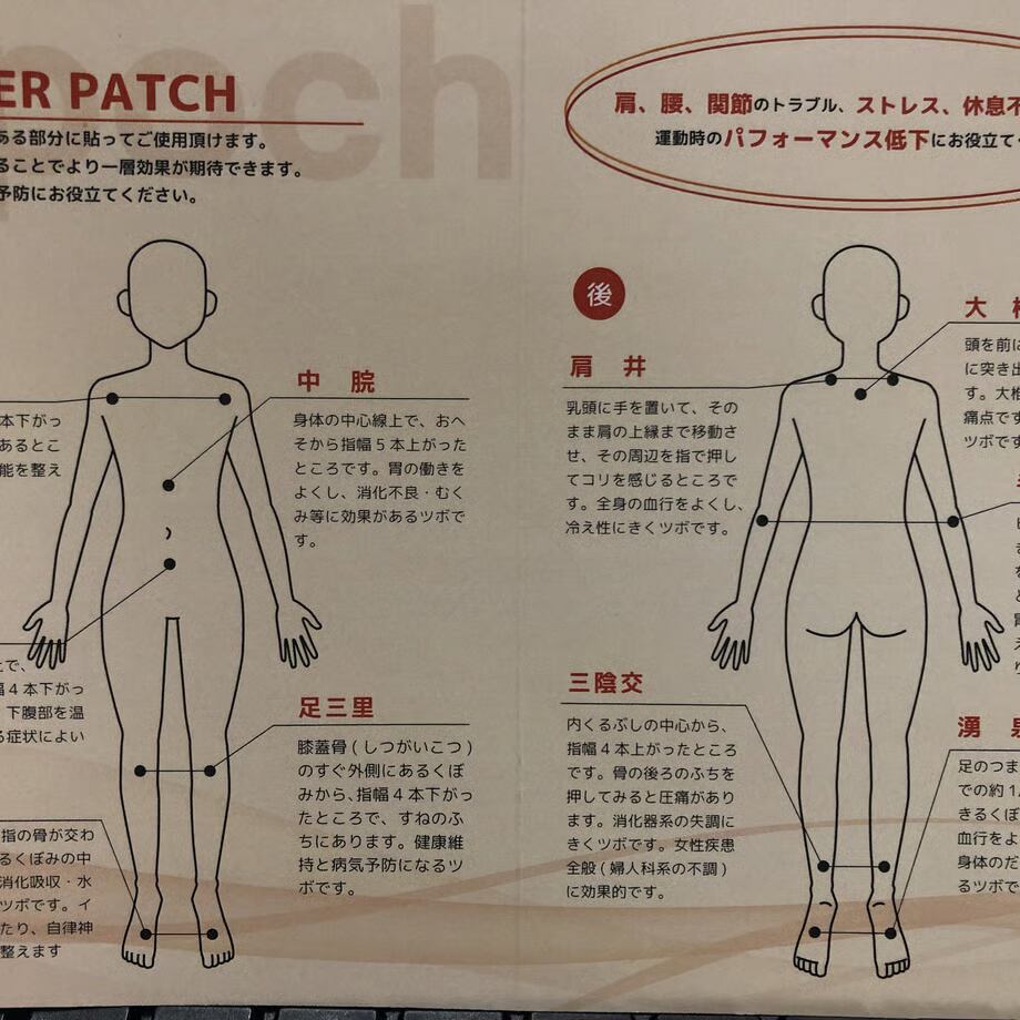 ・マイナスイオンパウダーと天香石パウダー(遠赤外線)を使用しています。身体の痛みの緩和にお役立て下さい。また、ツボに貼ることでより一層効果が期待できます。