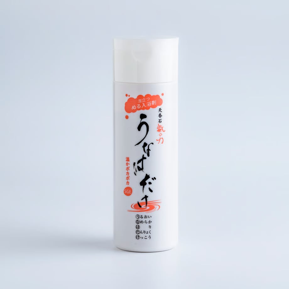 掛け湯で体を湿らせた後、「うなはだけ」を適量手に取り、全身又は首、肩、腰など気になる部分にマッサージするように摺り込んでから1~2分放置した後、そのまま入浴するかシャワーで洗い流して下さい。