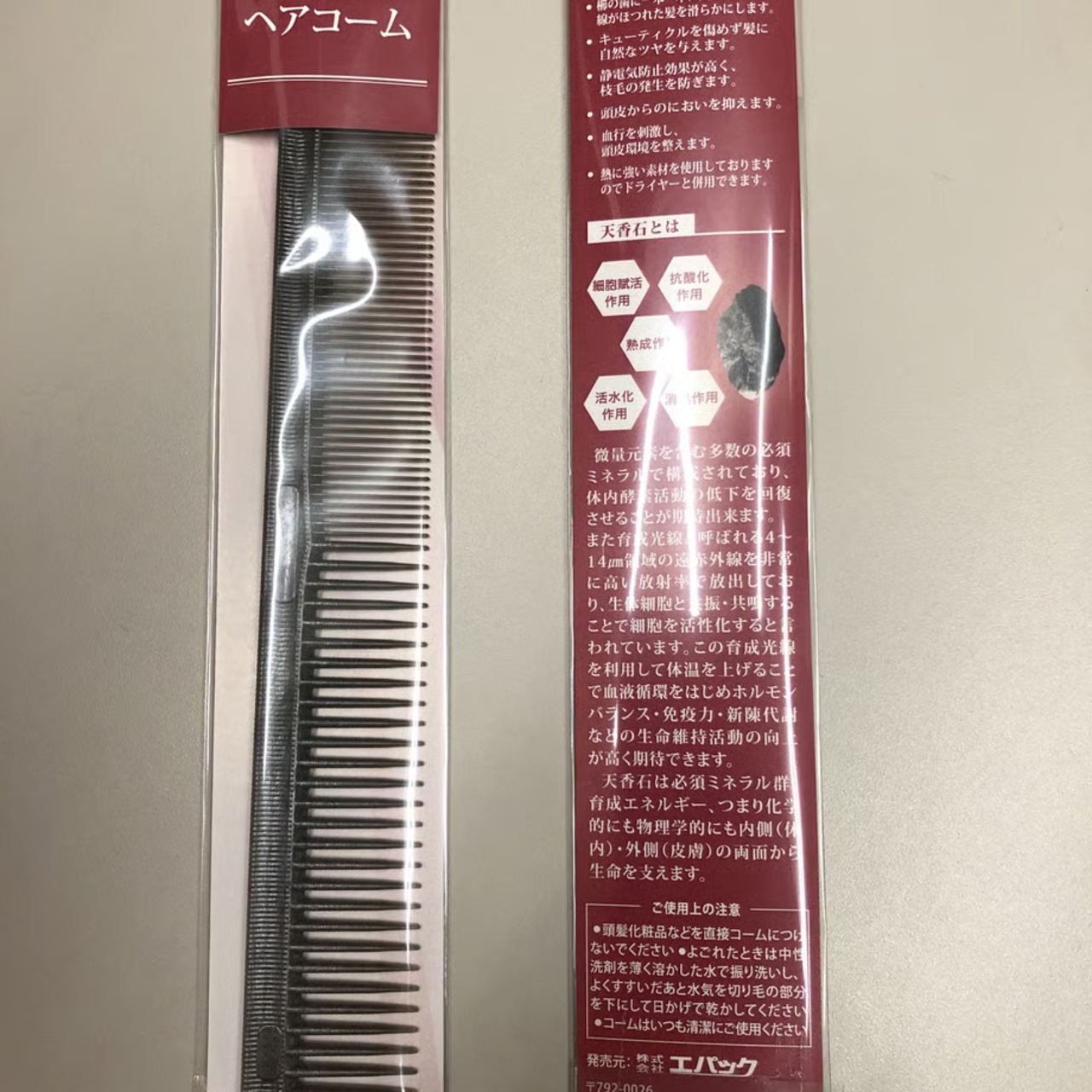 天香石の粉末を練りこんだヘアーコーム